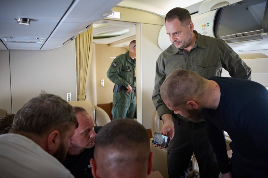 «За результатами переговорів із турецькою стороною Україна повернула на батьківщину військових – захисників «Азовсталі»: командира окремого загону спеціального призначення Національної гвардії «Азов» Героя України Дениса Прокопенка, його заступника Святослава Паламаря, виконувача обов’язків командира 36-ї окремої бригади морської піхоти Сергія Волинського, старшого офіцера «Азова» Олега Хоменка та командира 12-ї бригади Нацгвардії Дениса Шлегу», – йдеться у повідомленні.
