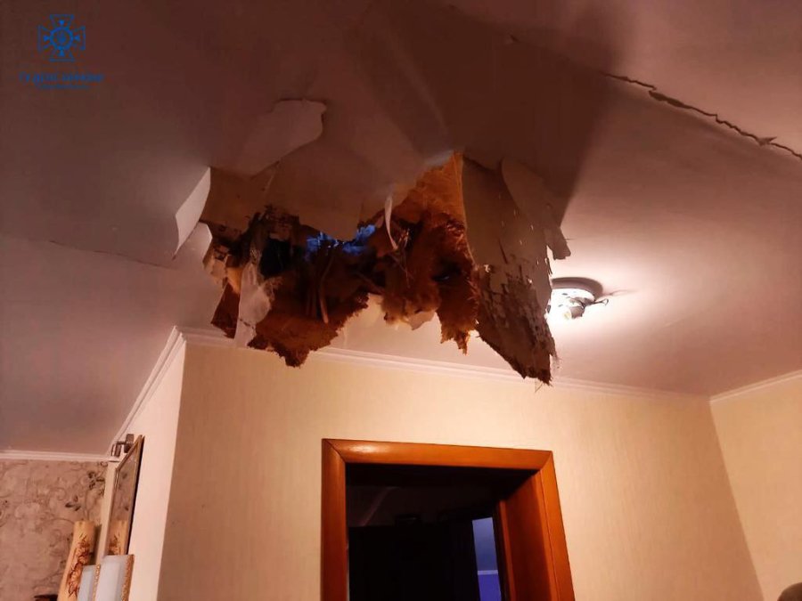 Внаслідок падіння уламків на Київщини пошкоджені 12 приватних будинків та один багатоповерховий, МВС опублікувало фото наслідків ворожої атаки ударними БпЛА.