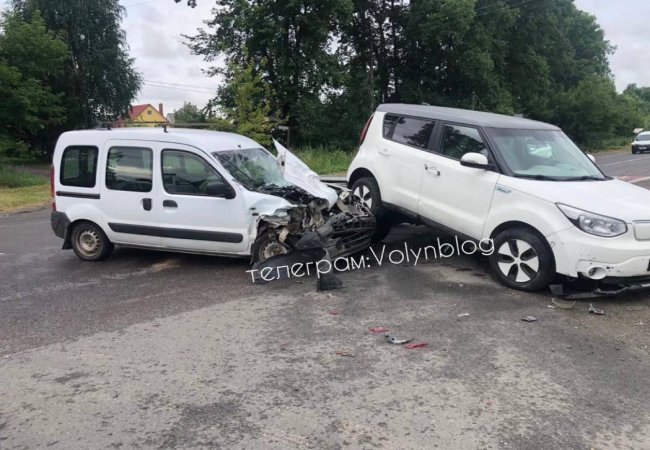 Патрульні встановили, що водій лафету Mercedes-Benz з напівпричепом Boro, рухаючись вулицею Володимирською, повертав на вулицю Центральну та не надав переваги у русі автомобілю Renault Kangoo.