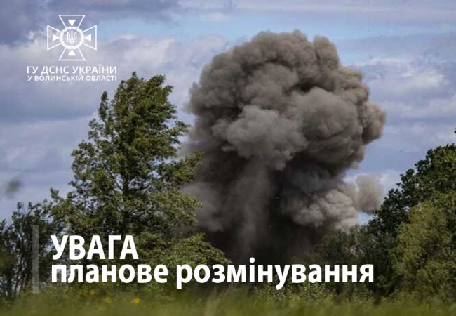 "14 липня з 13:30 до 15:30 біля села Березолуки Луцького району піротехніки ДСНС знешкоджуватимуть боєприпаси часів минулих воєн, виявлені на території Волинської області. Розмінування планове. На прилеглих територіях можливе відлуння вибухів", - йдеться в повідомленні.
