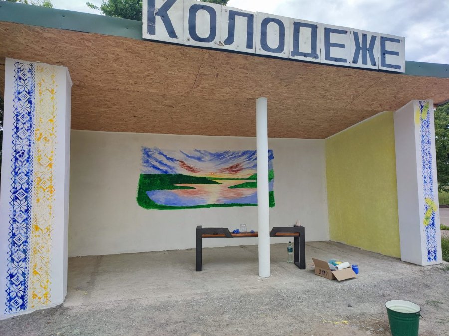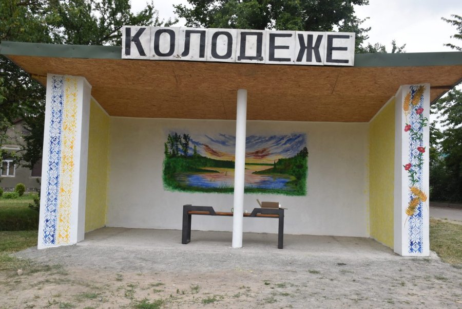 У селі Колодеже Городищенської громади розмалювали автобусну зупинку. Орнамент вишиванки, колосся, маки, захід сонця, річка та ліс – такі прекрасні українські символи та краєвиди у вигляді малюнків тепер прикрашають споруду в центрі села.
