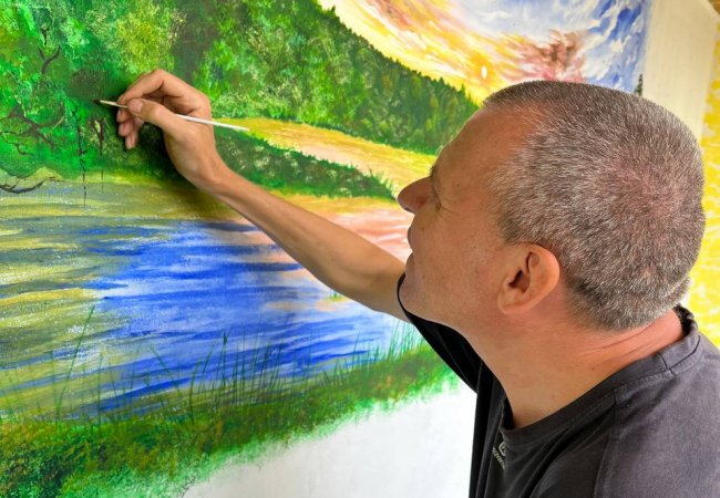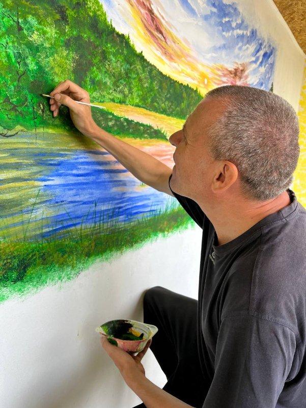 Переселенець з Донеччини розмалював зупинку у волинському селі. ФОТО