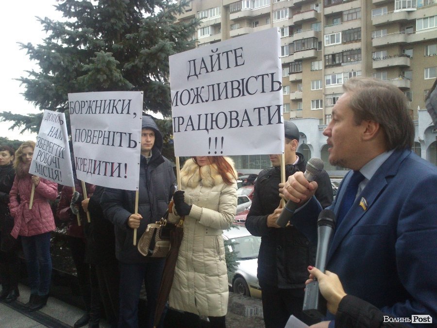 Члени профспілки працівників «Західінкомбанку» пікетували приміщення Волинської облради.