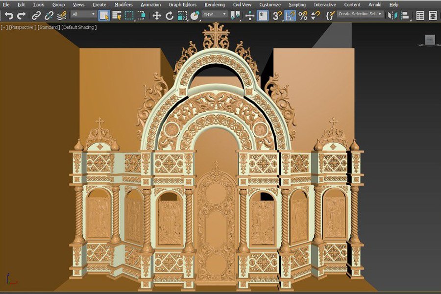 «Робота починається з дизайнерського креслення виробу, яке робимо в комп’ютерній програмі, – пояснює Володимир. – Потім станок це креслення по-своєму оцифровує, обчислюючи, як має їздити фреза, з якою частотою та на якій висоті – і виконує об’ємне різьблення по дереву. Це і хрести, і ангели, і дерев’яні колони, і виноградна лоза та інші символи християнства».