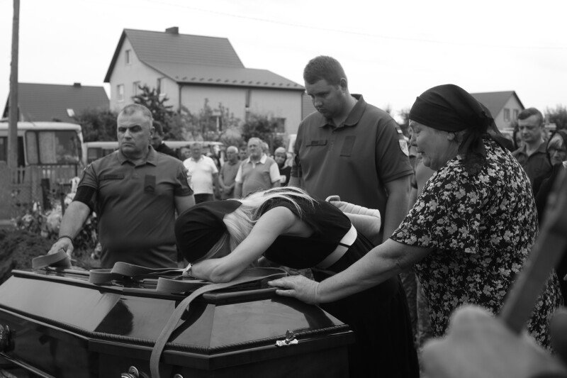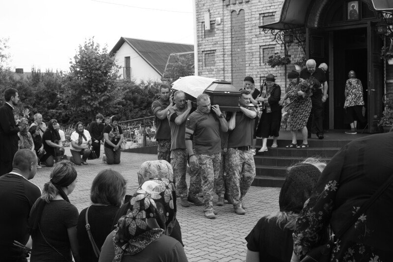 На знак вдячності за подвиг Героя присутні на похороні стали на коліна перед захисником.