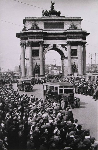 Зустріч іноземної делегації у Білоруського вокзалу. Площа Тверської застави. Московські Тріумфальні ворота (Тріумфальна арка), 1931