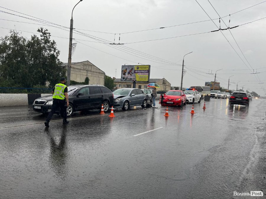 На проспекті Перемоги у Луцьку на мосту сталася аварія за участю кількох автівок.