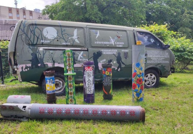 Усього в розписі автівки взяли участь шестеро викладачів та учні художньої. Також художники розмалювали тубуси від снарядів і хвостовик від міни.