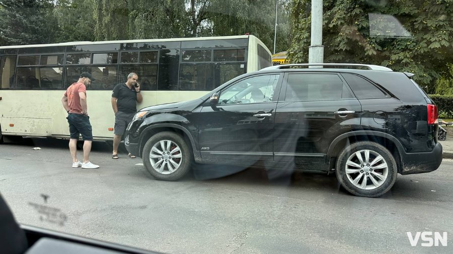 Відомо, що позашляховик «КІА Соренто» в'їхав у маршрутку. За попередніми даними, в аварії ніхто не постраждав.