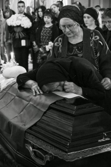 Після завершення панахиди домовину з тілом Героя прощальною ходою пронесли Театральним майданом. У цей момент лучани, віддаючи останню шану загиблому, утворили живий коридор і прихилили коліна перед захисником.