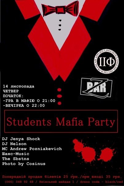 Також у програмі вечірки виступи від: Шанс-Musiс, DJ Jenya Shock, DJ Nelson та MC Andrew Pozniakevich.