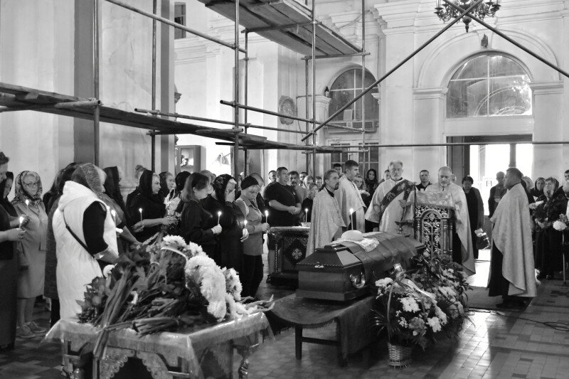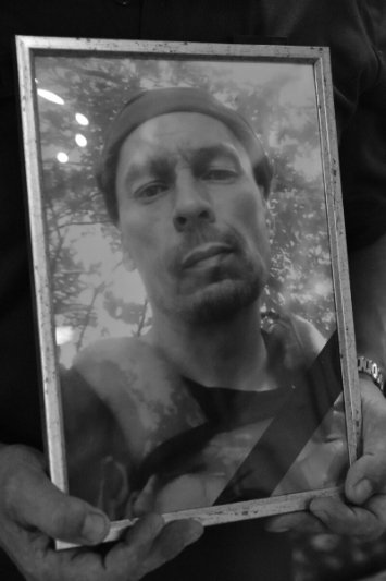Після завершення панахиди домовину з тілом Героя прощальною ходою пронесли Театральним майданом.Біля фотостенда “Герої Небесної Сотні – Загинули за єдність України” скорботна процесія зупинилася і виконала Державний Гімн.