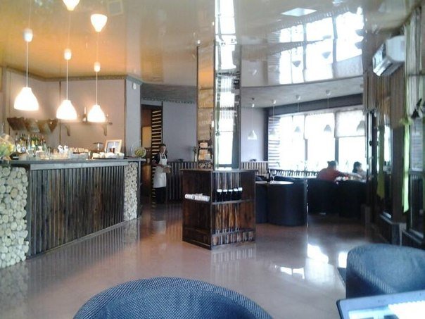 Інтер’єр: спокійні пастельні тони, приглушене освітлення, фонова музика. З плазми транслюють канал мод. Столики і стільці в сільському стилі – щось на зразок пофарбованої марки меблів ІКЕА.