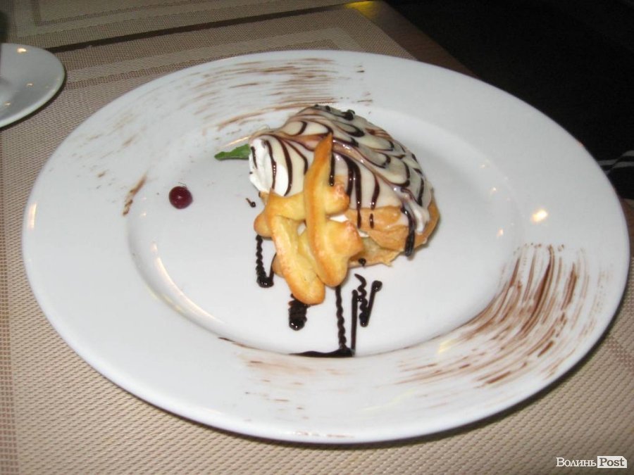 Принесли десерт. «Беліссімо» - профітроль з кулькою морозива. Але на смак як заварне, яке привезли вчора.