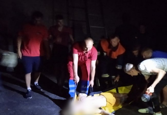Вони дісталися до потерпілого по триколінній висувній драбині, спустили його на землю й передали медикам.