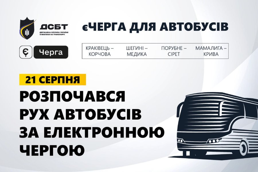Із 21 серпня рух автобусів регулярних та нерегулярних рейсів можливий лише за записом в Електронній черзі перетину кордону на сайті echerha.gov.ua.через такі пункти пропуску: