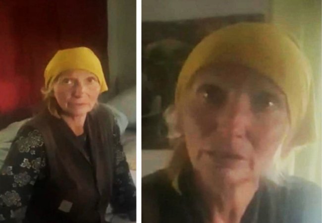 Одягнена: у кофту сірого кольору, спідницю, без хустини. Жінка має психічні розлади.
