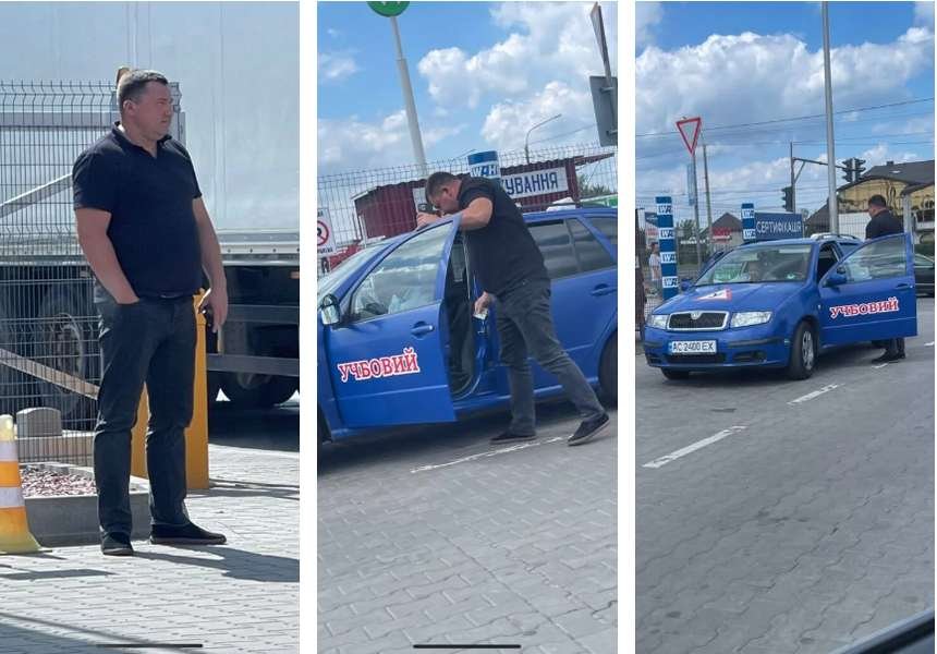 Після скандалу та виклику поліцейських у кабінет мера, Сергій Рижков опублікував світлини Олександра Ковальчука поруч з учбовим автомобілем на території Сервісного центру МВС.