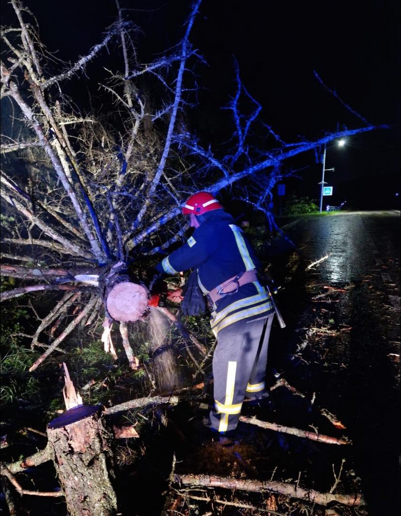 Рятувальники 7-ї та 15-ї державних пожежно-рятувальних частин м. Володимир та смт Локачі, використовуючи спеціальний інструмент, прибрали дерева з проїжджих частин та провели демонтаж конструкцій зруйнованої вітром зупинки громадського транспорту.