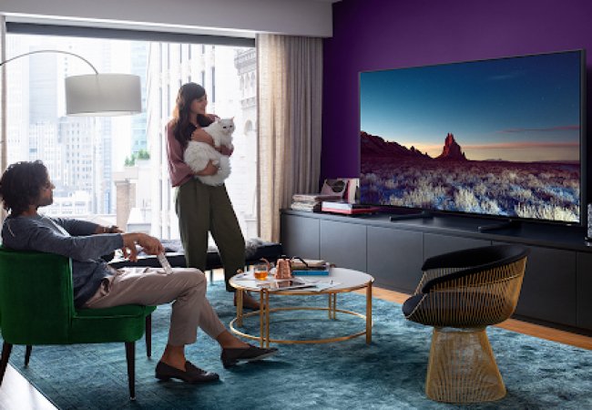 Яскраві екрани великих телевізорів Samsung створюють у кімнаті неперевершену атмосферу й відповідний настрій. Використовуючи девайс для розваг чи роботи, ви з легкістю поринете у контент і забудете про відволікання.