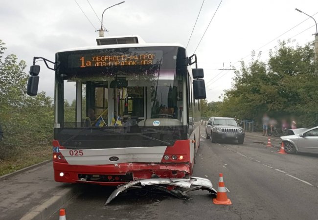 Правоохоронці інформують, що внаслідок зіткнення керманичка отримала тілесні ушкодження, її госпіталізували до лікарні. Водій та пасажири тролейбуса не травмувалися.