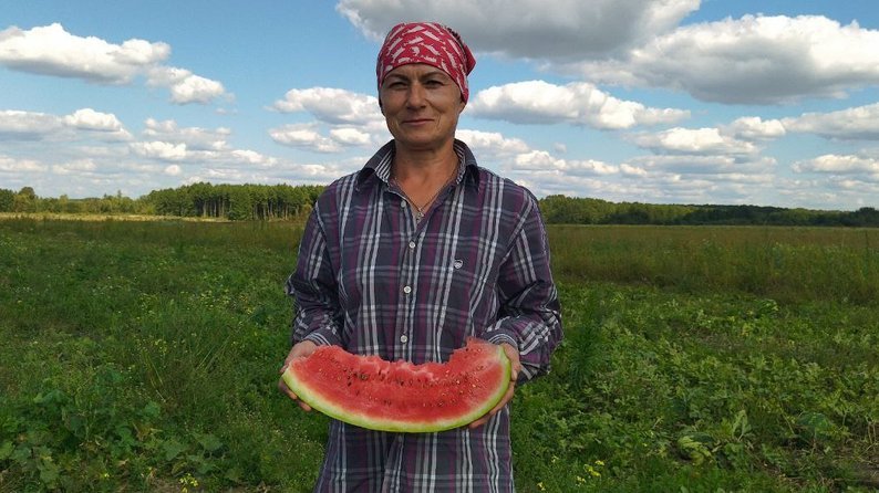 "Солодкий, смачний... Колір гарний, червоний, такий як має бути, соковитий, зернят мало. Колись ми купували південні кавуни, міняли на картоплю", — сказала волинянка.