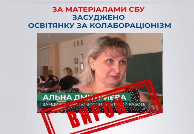 Також колаборантка брала участь в агітаційних заходах та роздавала відеокоментарі, в яких виправдовувала агресію загарбників з рф та насаджувала українським дітям ворожі російські наративи.