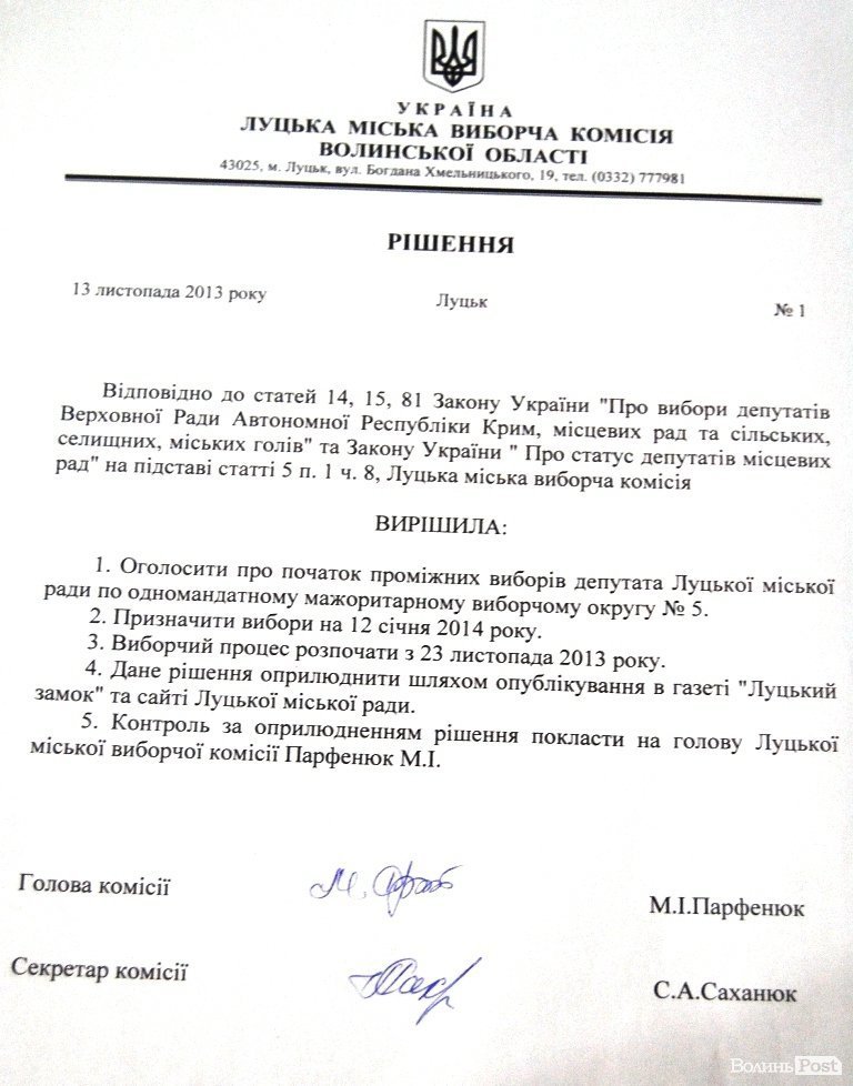 Про це стало відомо 13 листопада під час засідання Луцької міської виборчої комісії.