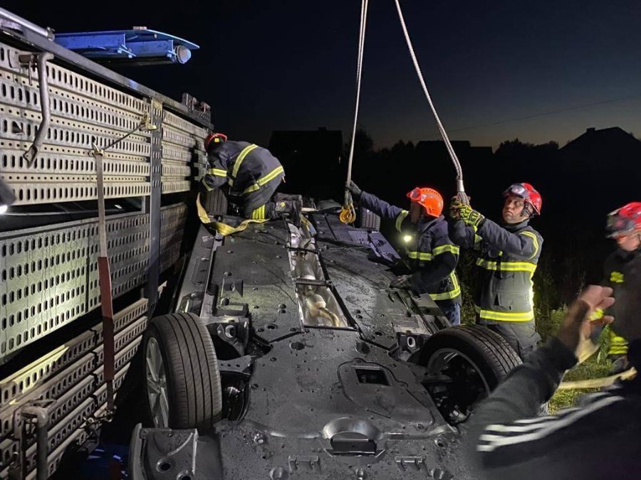 Повідомлення про надзвичайну подію на лінію 101 надійшло о 23:12 учора, 15 вересня. На трасі біля села Колодяжне перекинувся автовоз, що транспортував легкові автомобілі, і заблокував рух в обох напрямках. Потерпілих та жертв немає.