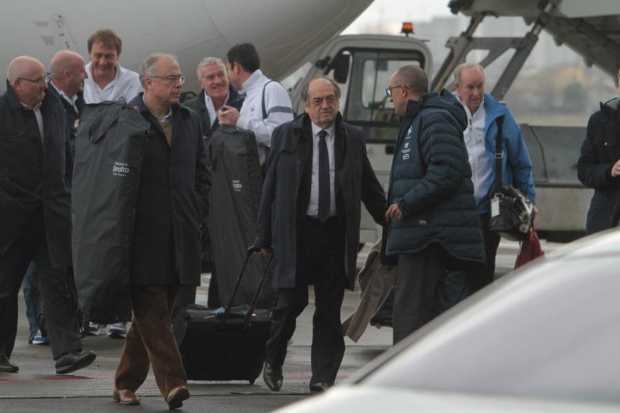 Збірна Франції прилетіла на чорно-білому літаку із зірками та планетою на хвостовій частині. Білий автобус під'їхав майже впритул до повітряного судна. Одним із перших з літака вийшов президент Федерації футболу Франції Ноель Ле Грае. На функціонера чекав чорний "Мерседес".