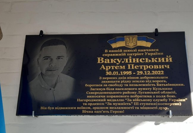 29 вересня у Жорнищенському ліцеї відбулося урочисте відкриття меморіальної дошки захиснику України Вакулінському Артему Петровичу.