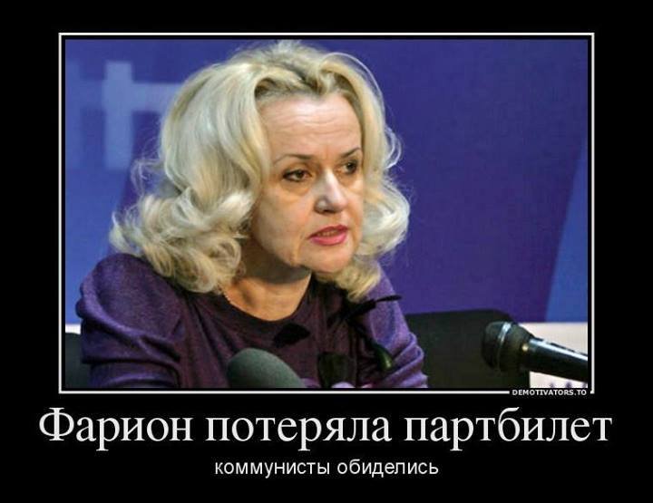 Після того, як оприлюднили документи про те, що «свободівка» Ірина Фаріон у 1988-ому році вступила до КПРС, в Інтернеті почали з'явилися демотиватори на цю тему.