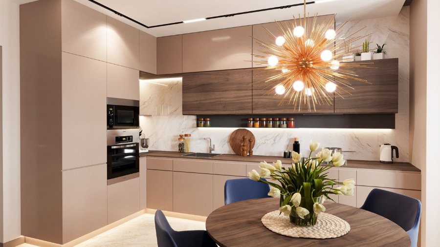 При проектуванні кухні зверніть увагу на ергономіку. Важливо, щоб робочі зони були зручно розташовані і не заважали одна одній. Також обдумайте питання зберігання і виберіть меблі, які максимально використовують простір.