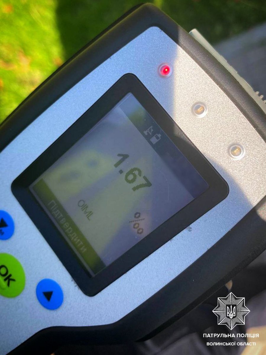 Патрульні, які прибули на місце події, виявили у водія Audi ознаки алкогольного сп’яніння. Освідування за допомогою алкотестера Drager показало результат 1,67 проміле.