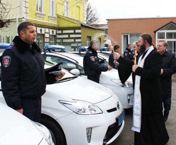 На завершення настоятель Свято-Георгіївського храму, зведеного на честь загиблих працівників міліції, протоієрей Олександр Мазурак звернувся до тих, хто нестиме службу на цих автомобілях із напутнім словом і освятив транспортні засоби.