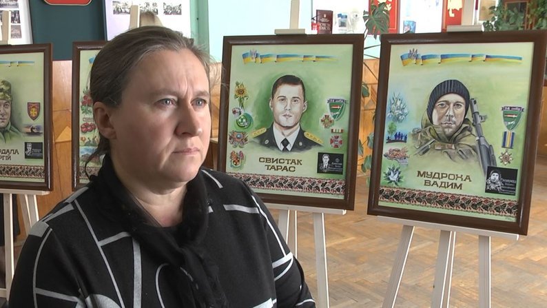 Портрети захисників України написала місцева художниця Ніна Фесенко. Вона розповіла Суспільному, що гроші на закупівлю фарб, мольбертів та полотен надали благодійники.