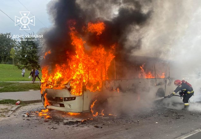 На момент прибуття вогнеборців до місця виклику автобус був охоплений вогнем.