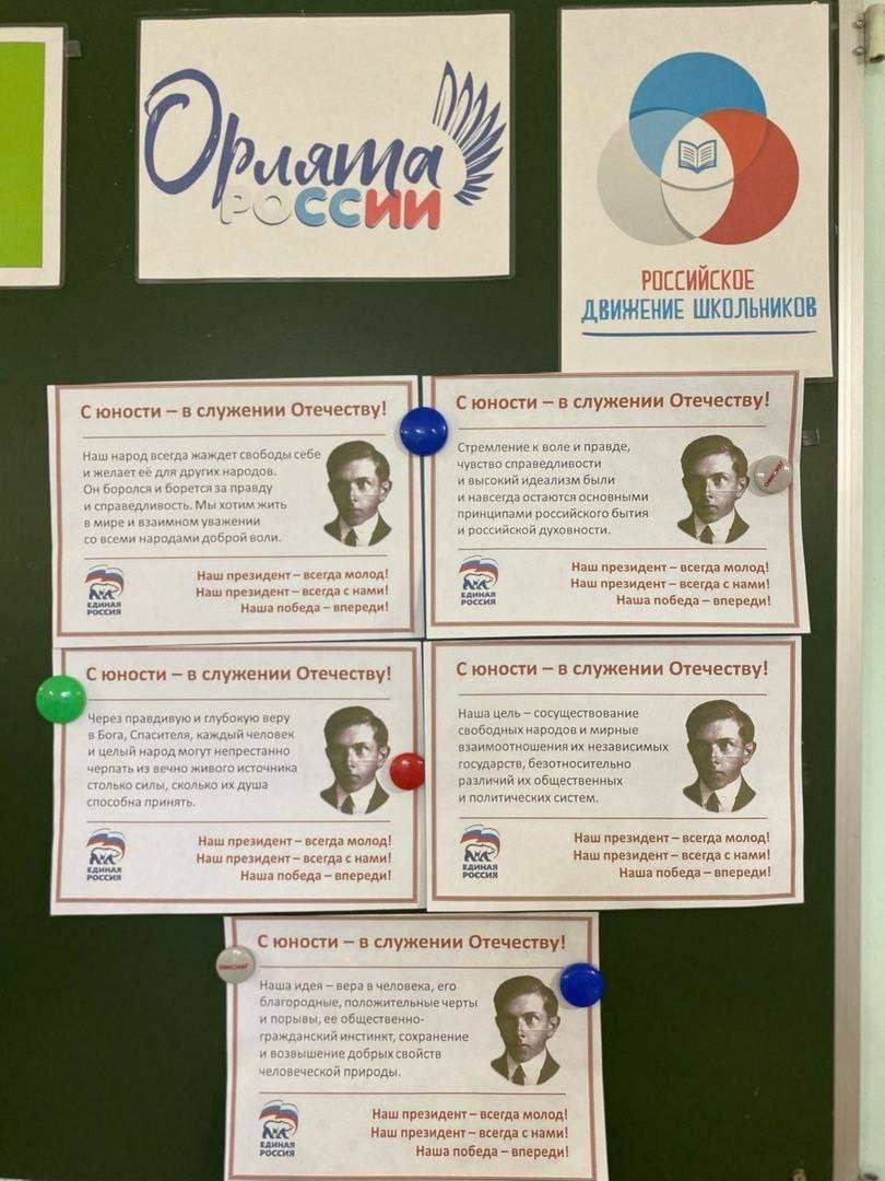 Російські вчителі провели флешмоб на честь дня народження президента РФ Володимира Путіна. Під час акції використали портрет молодого Степана Бандери й навіть не впізнали його.