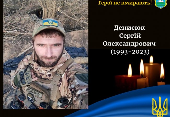 «Знову непоправна втрата у громаді. Життя молодого солдата відібрали кляті окупанти. З великим жалем повідомляємо про загибель нашого краянина, мужнього воїна із села Мала Глуша – Денисюка Сергія Олександровича, 1993 року народження», - повідомили у міськраді.
