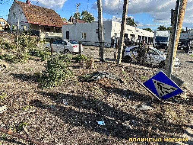 Водію стало зле: у Луцьку автівка збила дорожній знак та в`їхала в огорожу. ФОТО