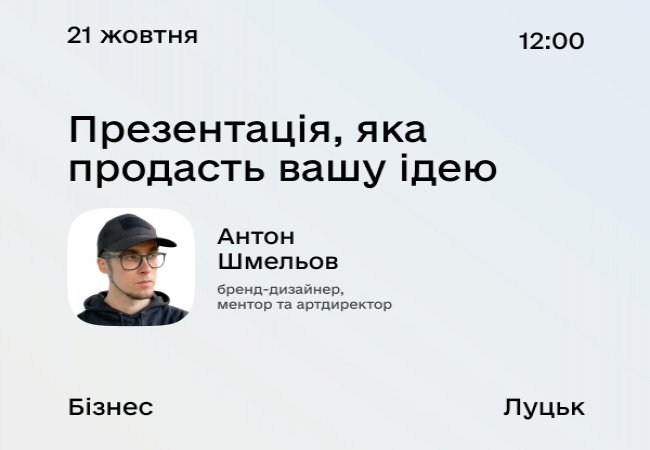 Як продати свою ідею будь-кому завдяки презентації? Про це 21 жовтня (суботу) на воркшопі розповість бренд-дизайнер Антон Шмельов.
