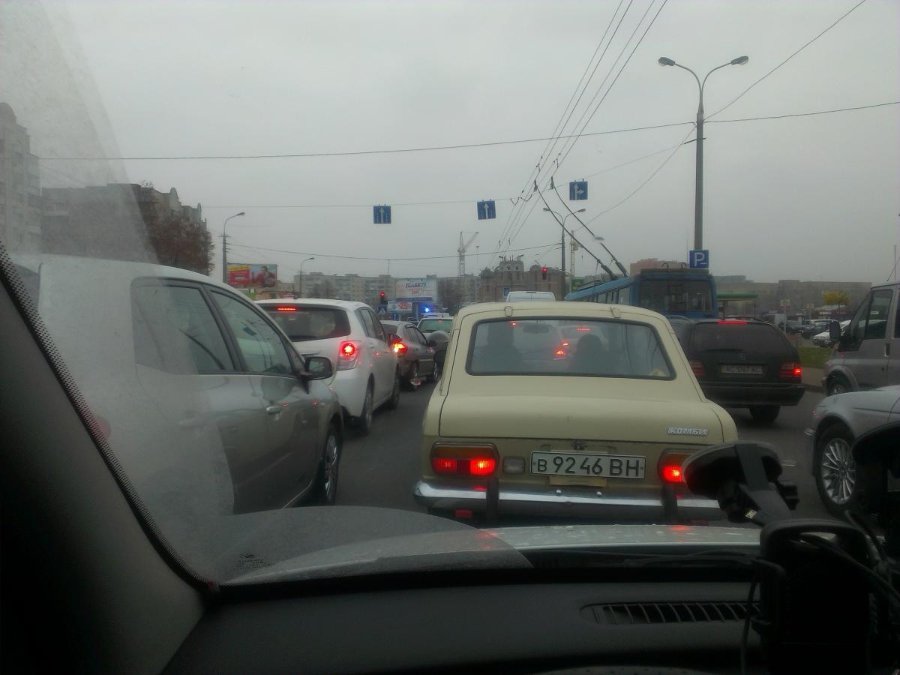"Пацанчік на англійській нубірі (правий руль) не розрахував щось, і при перестроюванні в лівий ряд нормально так прицідив 3-5 річну ауді А6, за кермом була пані. не розумію навіщо там дьоргатись, всерівно мало що виграєш - наробив збитків і настрій людям спсував...", - йдеться в повідомленні на форумі.