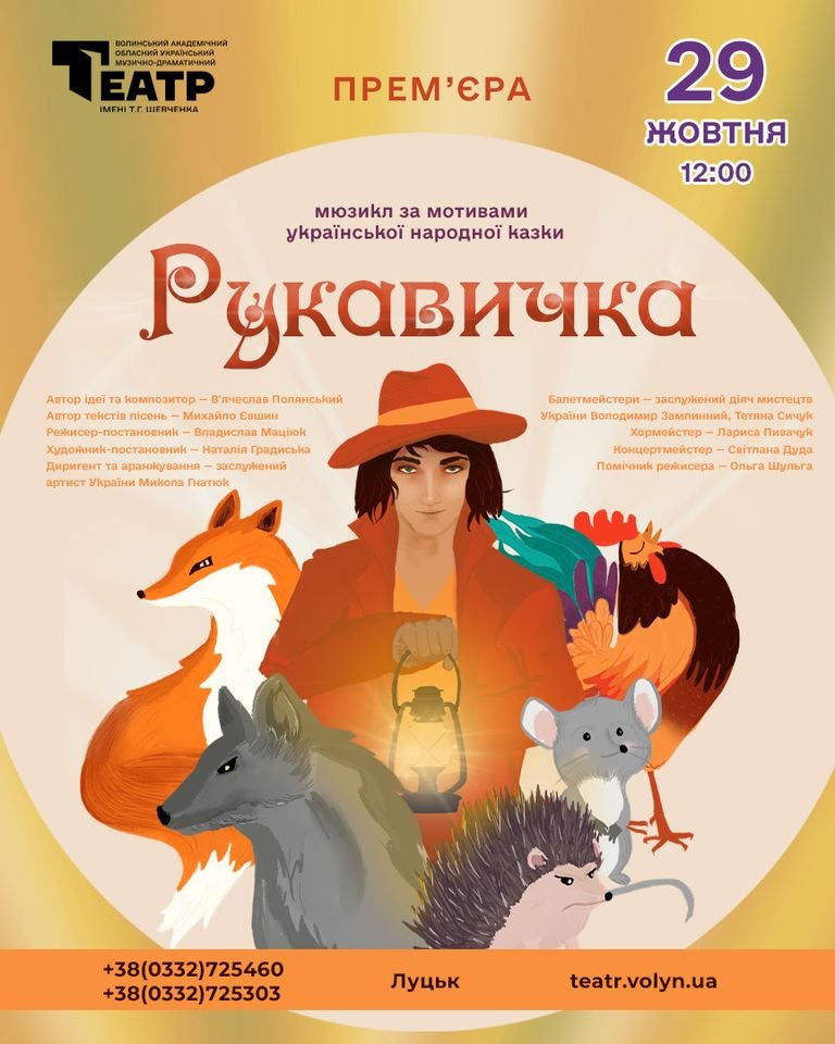 Мюзикл за мотивами української народної казки «Рукавичка» покажуть на основній сцені для дітей Волинського академічного обласного українського музично-драматичного театру імені Тараса Шевченка.