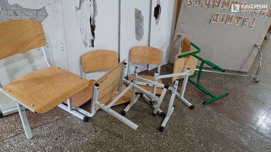 У вестибюлі школи з'явилася імпровізована виставка, де зібрали парти, стільці та інші предмети, які потрапили «під роздачу» учнів. «Зупиніться! Подивіться... Це зробили наші учні! Задумайтеся, дійте!» – такий напис зображений на стенді поруч.