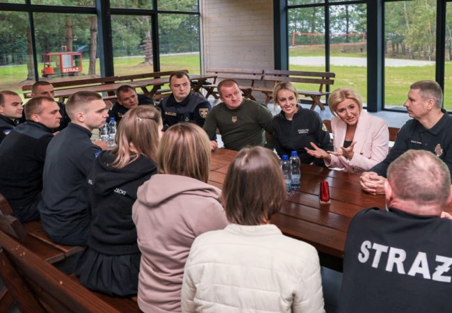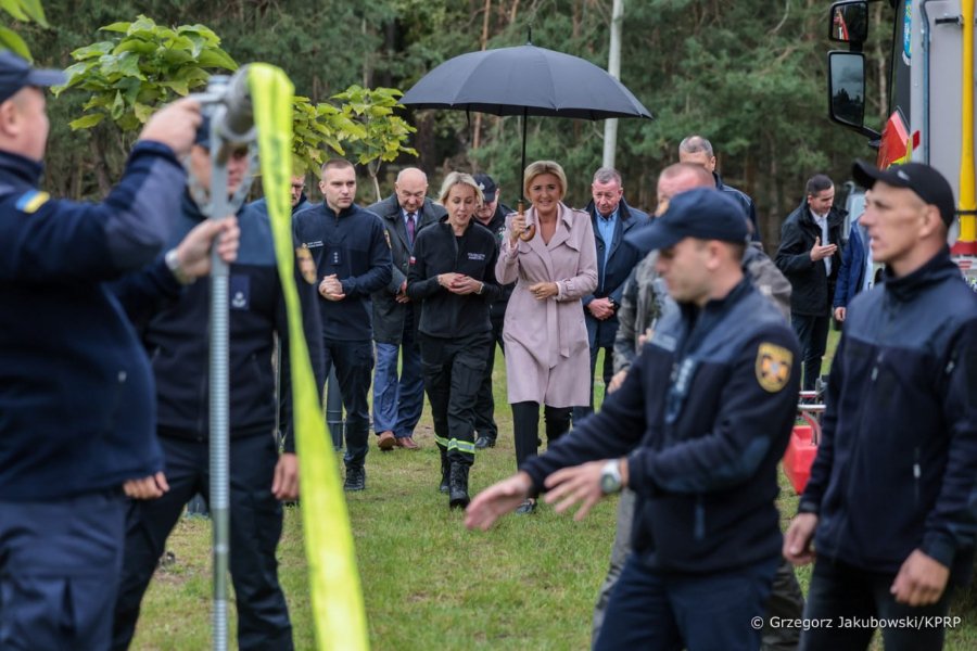 Практичні навчання на пожежному полігоні відвідала перша леді Польщі Агата Корнгаузер-Дуда.