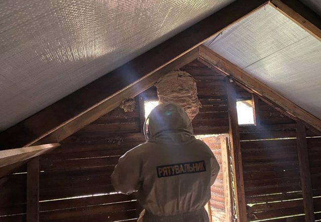 За допомогою до фахівців ДСНС на Волині звернулася жінка, яка виявила гніздо шершнів на горищі.