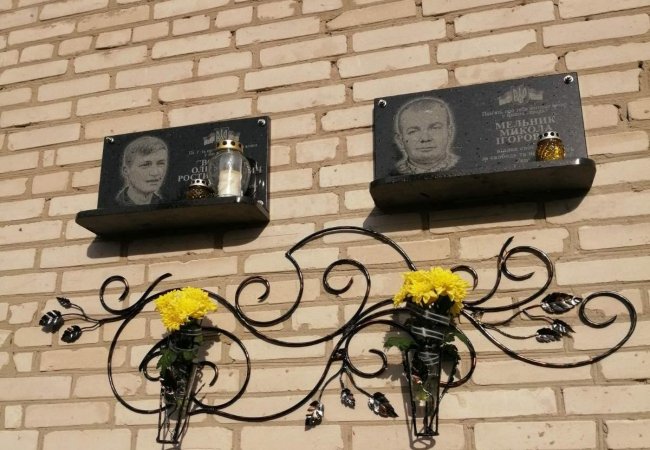 Присутні, схиливши голови в хвилині мовчання, віддали данину шани світлій пам’яті загиблих земляків Олександра Євстурова та Миколи Мельника та поклали квіти до пам'ятних дошок.