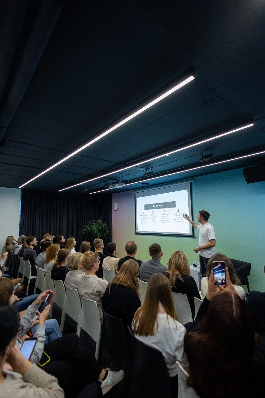 Під час лекції Владислав Присяжнюк, зокрема, розповів про деякі завдання, які можуть виконати чат-боти замість великого штату менеджерів. Наприклад, спілкування із клієнтами, автоматизована оплата та виставлення рахунків, аналітика та контроль, синхронізація з іншими сервісами тощо.
