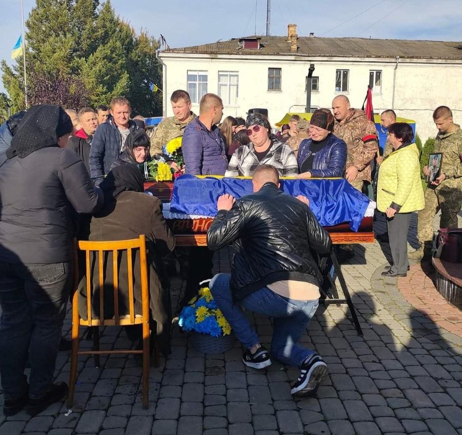 "Не вщухають ридання та розпачливі жіночі зойки під час громадської панахиди біля пам'ятного знака Борцям за волю та незалежність України. Це пошматоване материнське серце не приймає реальності, не хоче вірити, що війна відібрала найдорожчу людину.