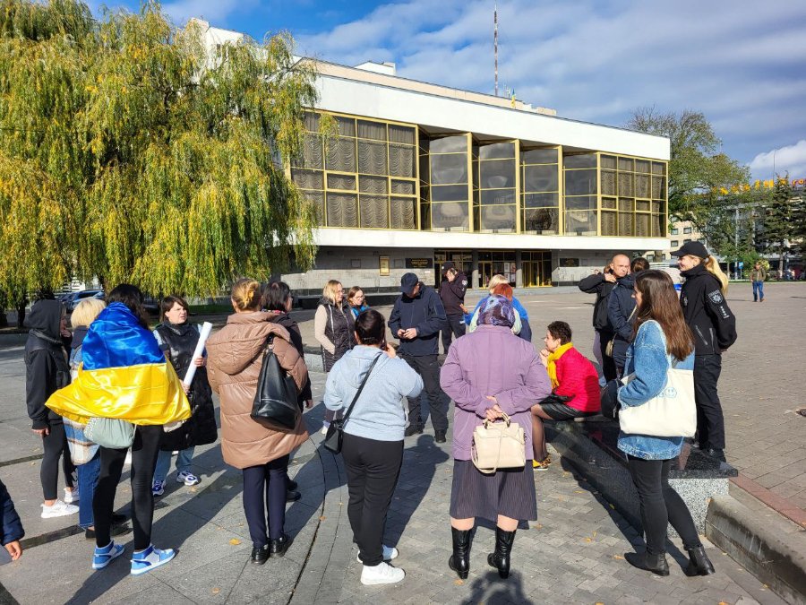 У Луцьку, на Театральному майдані, дружини військовослужбовців вимагали демобілізації чоловіків після 18 місяців служби.